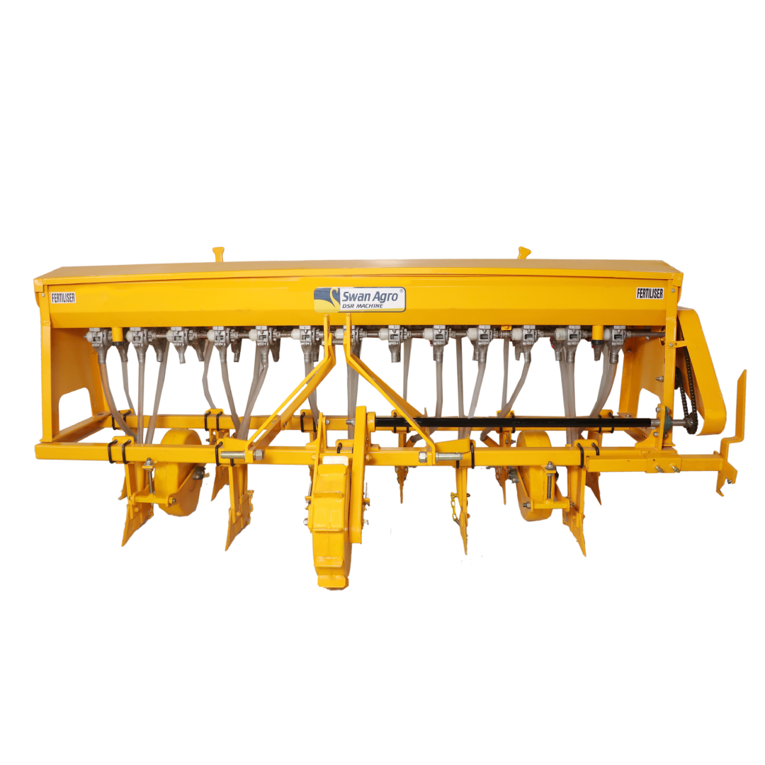 Zero-till-drill consists of frame, seed box, fertilizer box, seed metering mechanism, fertilizer metering mechanism’, seed tubes, furrow opener seed/fertiliser adjusting mechanism and transport cum power transmitting wheel. The frame is made from mild steel box section. The tynes are mounted with the help of clamps, to obtain infinite row spacing. The main difference between zero-till drill and conventional drill is that it has inverted T-type furrow opener fixed on the tynes instead of reversible shovels type furrow openers. The main advantage of inverted t-type furrow openers is non formation of clods, lower draft requirement and easier penetration in the soil.